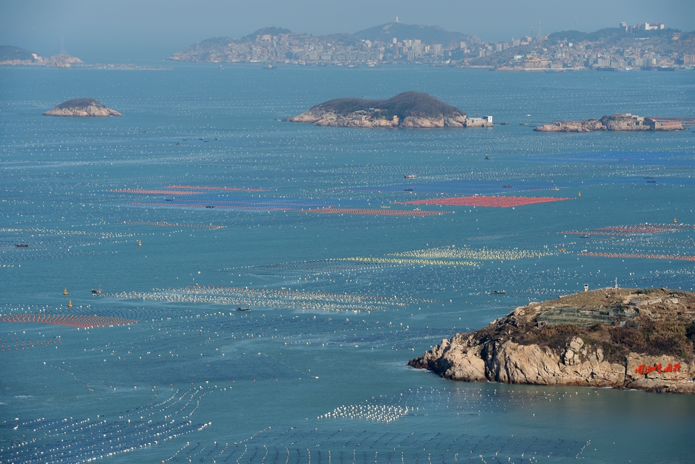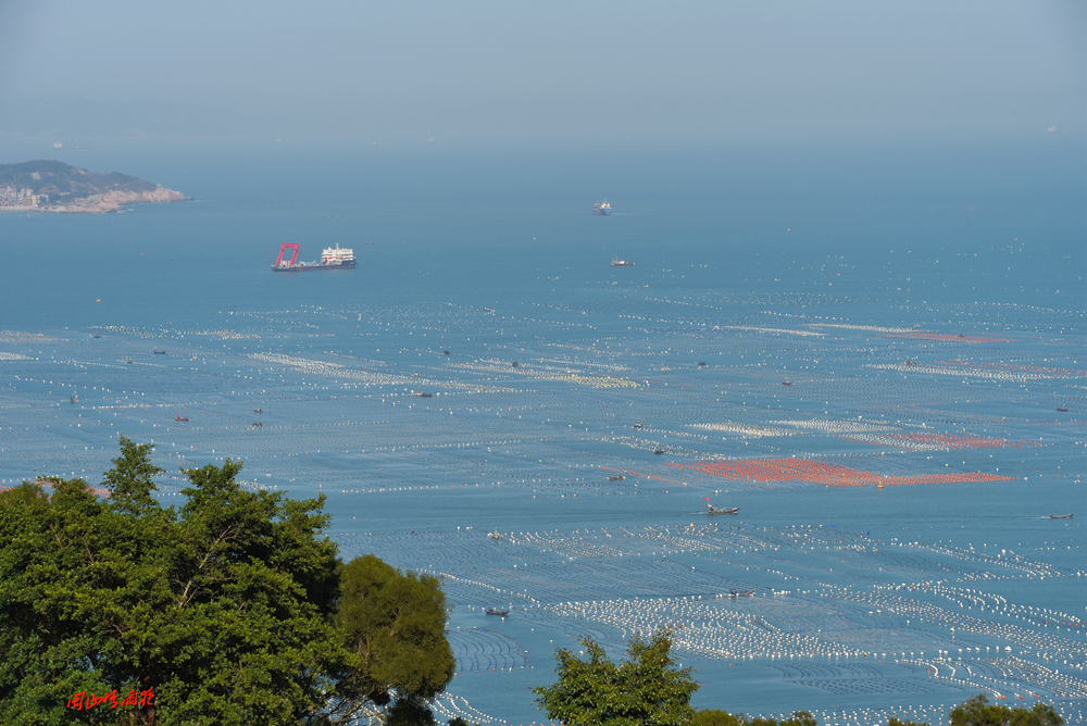 海上网箱、养殖排、疏浚船,外海停泊巨轮……