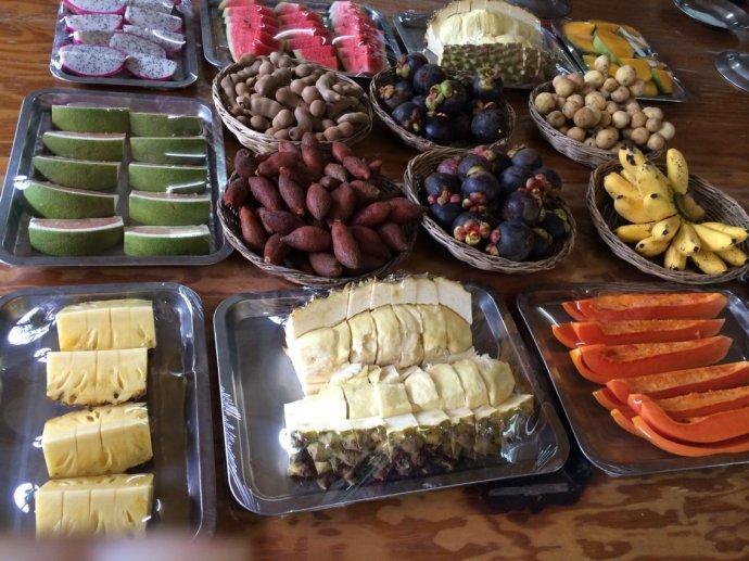 【热带水果园】和我想象中差好多,根本看不到大片的果园,就几颗孤零零的果树,上面也没有果子(大概是季节原因吧),感觉就和我家门口小花园差不多大。然后带到一个像大排档的地方,桌上有很多水果畅吃。主要有榴莲、山竹、蛇皮果、酸豆角、西瓜、芒果、小香蕉、龙宫果、菠萝蜜、红毛丹、火龙果,还有一个不知名的看着像山药的不怎么好吃的水果,还送了一份芒果椰汁糯米饭,很好吃。榴莲很熟很软糯,其他的也就那样,山竹很失望,不如水果店买的好吃。体验度:4颗星