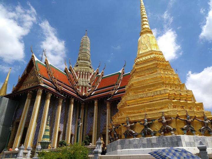 早上先去参观了【大皇宫】+【玉佛寺】,如果衣裤不妥当,会让你在门口换长裙和大象裤,100珠珠一条,也就20块RMB,后面也一直能穿,挺有东南亚风情的。建筑外观非常壮丽,色彩鲜艳,刷金漆,镶嵌了意大利水晶,金碧辉煌,玉佛寺里面是需要脱帽子、脱鞋子、禁止拍照的,建议带双一次性袜子,当然如果你不介意的话,其实也没关系。玉佛只能远观,据说是一整块玉雕刻而成,非常珍贵,会根据季节更换玉佛穿的衣服(纯金的哟~)。导游在里面稍作讲解就会让亲们自由活动,但是我第一天太累了,没怎么逛,非常可惜。