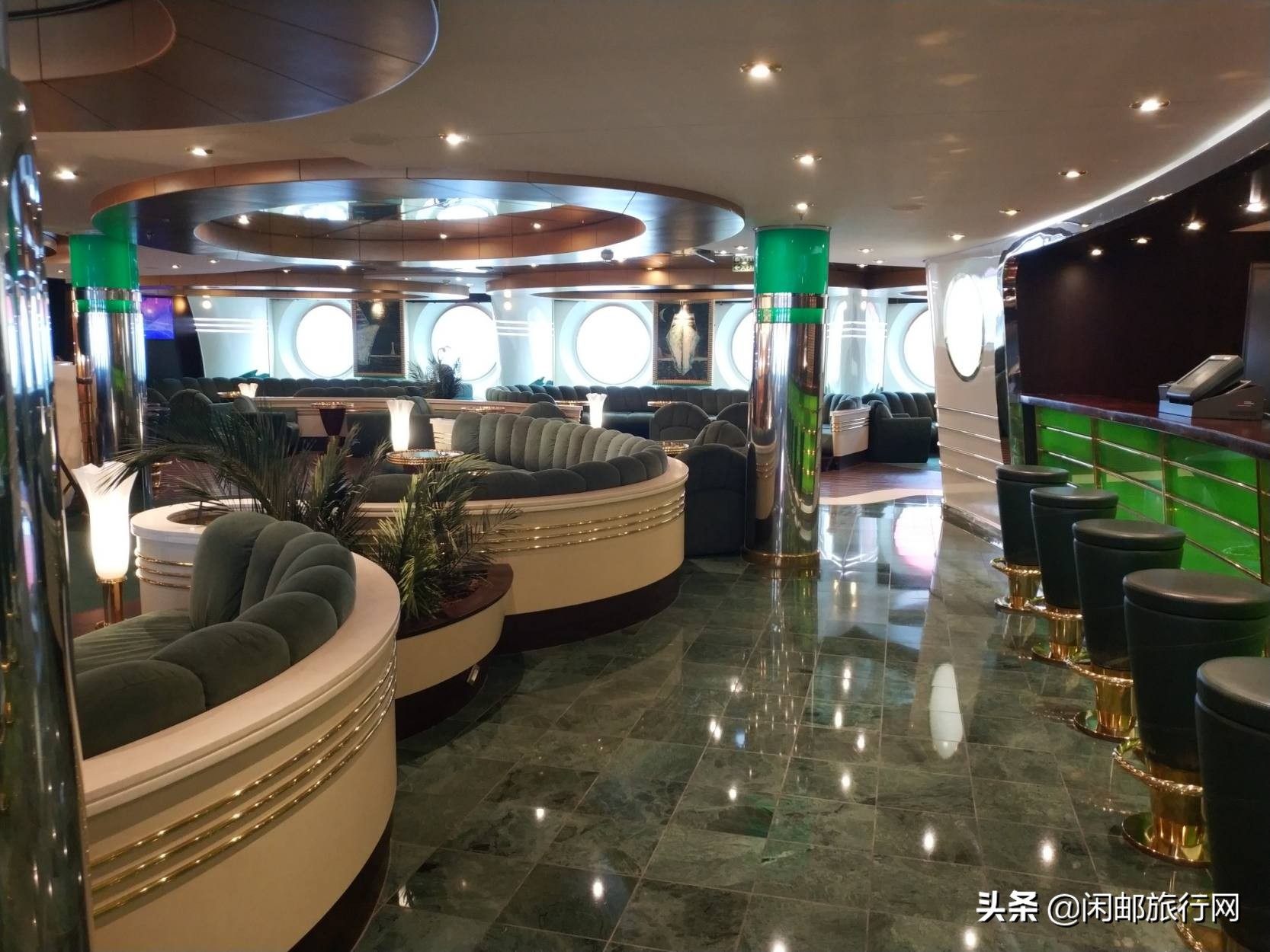 邮轮内一些装饰和酒吧。在爵士酒吧和14层甲板会有多场舞蹈教学,第一天晚上在14层甲板还有一个鲜花派对,跟着一起跳舞跳得很开心。15层有室外小篮球场/足球场,还有健身房,喜欢运动的人们也可以找到运动的空间。当然更多的人选择了打牌或者狼人杀游戏来消磨时光。船上有免税店,6层甲板还有一个个小摊位,卖烟酒护肤品和装饰品还有手表等,各求所需了。