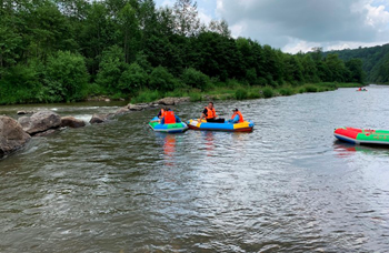 漂流的地方离度假区大概20分钟的车程,穿带漂流的衣服大概20分钟,漂流全程8公里,需要一个半小时左右的时间