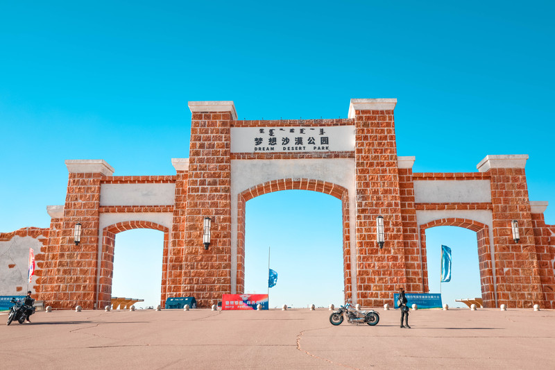 自驾前往这次机车英雄会的举办地——阿拉善左旗梦想沙漠公园,被一路上的风景吸引,一眼望去是无边无际的金黄沙漠,而阿拉善英雄会的标志性建筑也同样吸睛。