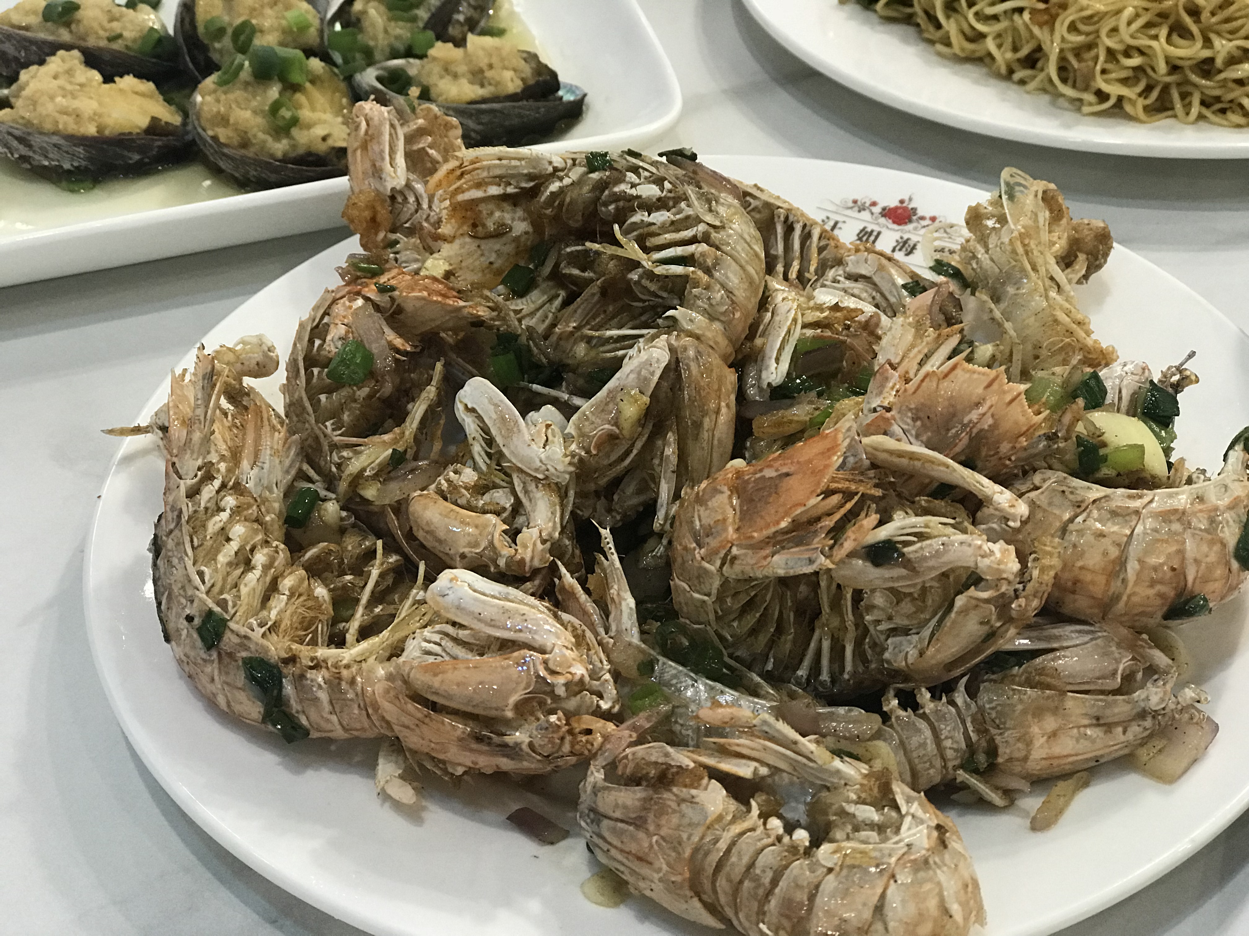 民宿客人报房号就可以点菜,我们外面来的要加50的座位费。晚上六点半,点了咸鱼茄子煲,虾仁蛋饼,油麦菜,等到八点,菜终于上齐……味道只能说不符合我们的口味,反正我中午的海鲜没吐出来,下午坐船头晕晕的,也没缓过神,仙女是个碳水脑袋,只要有碗白米饭就能填饱肚子,菜不重要,主要是景和照片,所以我们觉得,说是付饭钱200,不如说是拍照费200,所以下蓝桥照片至少值200块!