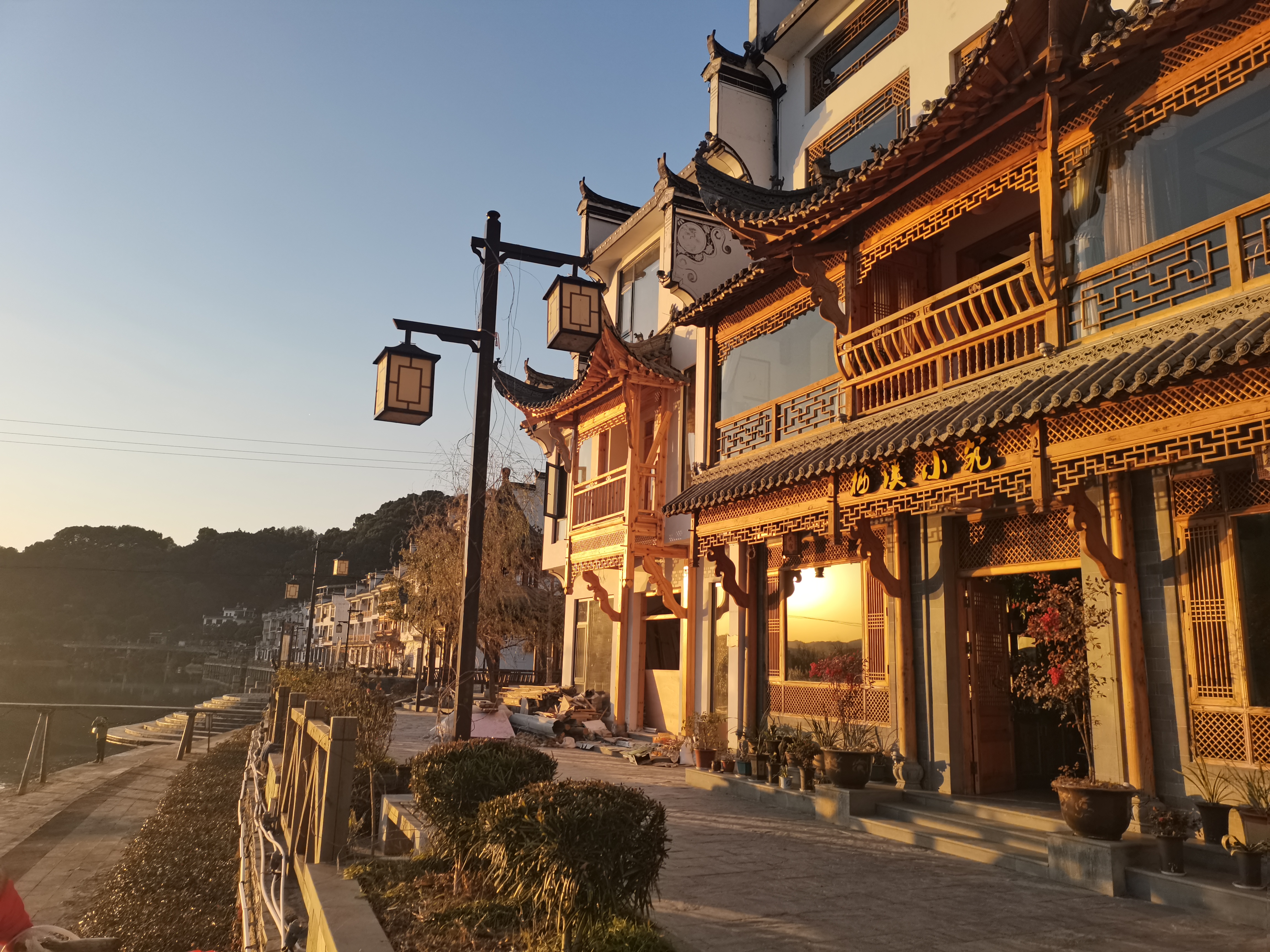 今天最让人惊喜的就是入住江湾的“栖溪小院”,我们到那里,刚好日落,夕阳西下,倒影着江水,美轮美奂。栖溪小院就在江边上,非常推荐他们家,房价合理,特别干净。