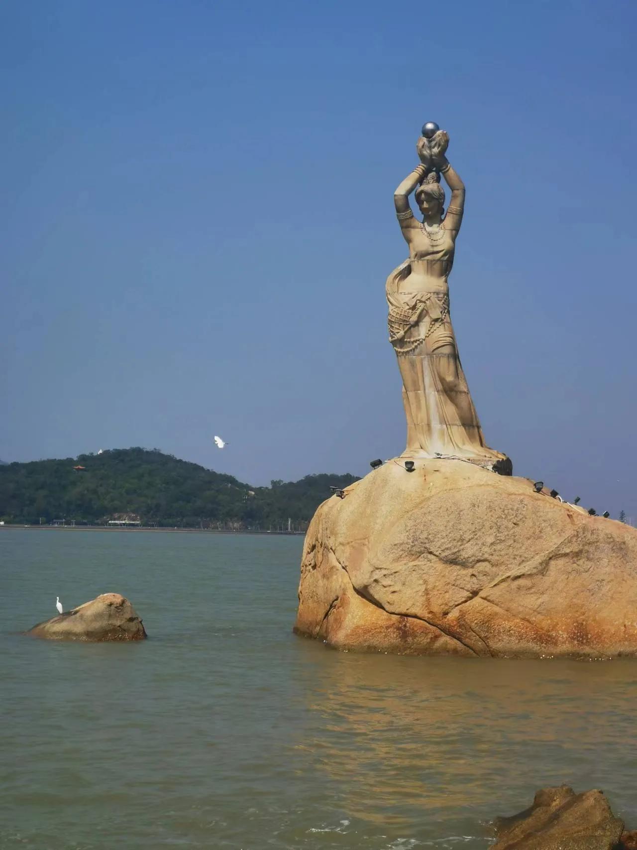 珠海渔女像位于情侣中路,看渔女像的同时可以赏海景,第一眼看到渔女像时真是觉得很特别。