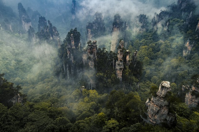 10. 张家界:张家界位于湖南省湘西土家族苗族自治州,是中国最著名的自然景区之一。它以独特的石柱地貌、高耸的石峰和周围的森林而闻名于世。