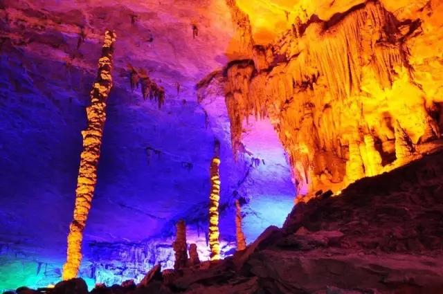 九龙洞位于铜仁市城东17公里的骂龙溪右侧观音山山腰,是贵州省首批确定的十大风景名胜之一。“九龙洞”广大恢宏,洞内有7个大厅,洞长2258米,总面积约7万平方米。已向游人开放3个大厅共12个景区。 九龙洞是一个大型天然喀斯特溶洞,洞内钟乳石林立,五光十色,晶莹剔透,千姿百态,妙趣横生,各种石花、石幔、石鸟、石兽随处可见,栩栩如生。其中高20米以上的钟乳石柱有数十根之多,最高一根高达39.98米,直径16.4米,为世界罕见,国内之最。