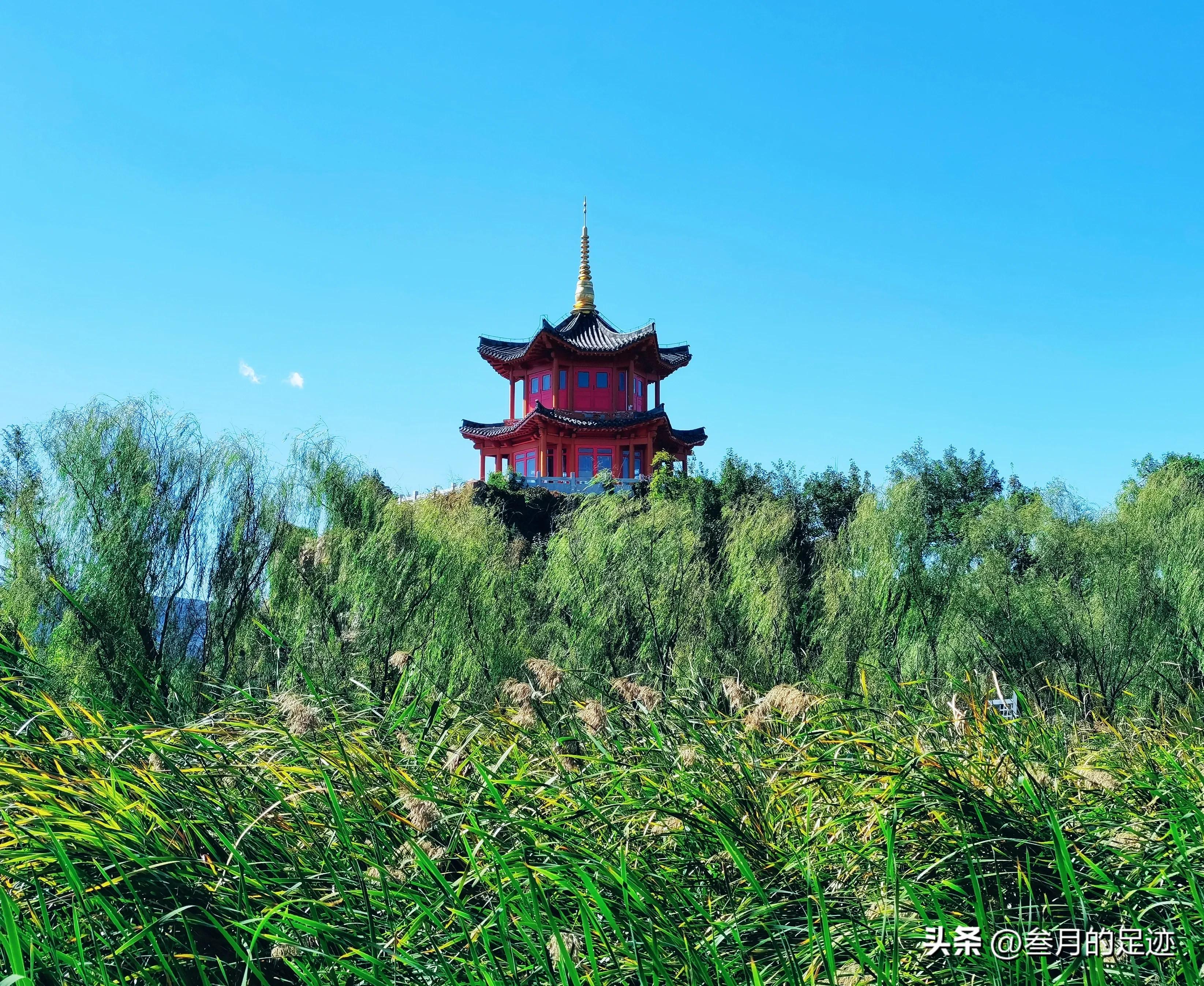 湿地后边的“渥丹阁”是园内的制高点,登至高处,可俯瞰整个园林的美景,可惜此行渥丹阁正在修缮,未能上去,略有遗憾了!