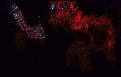 南北狮团齐聚台儿庄古城,伴着锣鼓的阵阵响声,一头头活灵活现的舞狮跃进会场,欢腾跳跃,或摆尾,或仰头,或俯卧,或欢跳;做着踩桩、滚绣球、上板凳等高难度的动作。