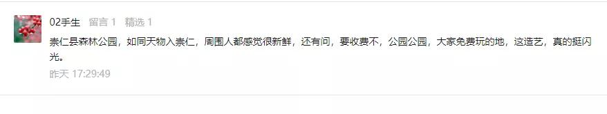 “崇仁县森林公园,如同天物入崇仁,周围人都感觉很新鲜,还有问,要收费不,公园公园,大家免费玩的地,这造艺,真的挺闪光。”