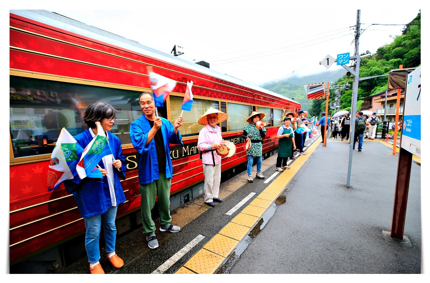 因为千年物语列车经过的车站是相对偏僻的路线,所以只要有列车经过,当地居民都会前来欢迎游客,感觉还是挺暖心的。
