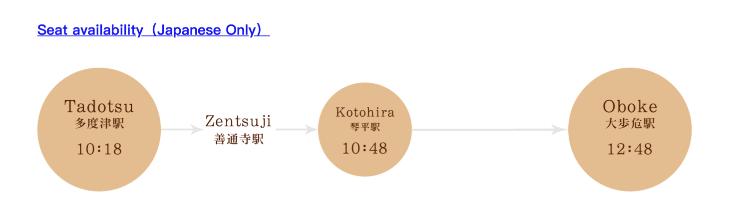 四国千年物语列车的起点是多度津站,早晨10:18出发! 小编乘坐的是10:48从琴平站出发到大步危站这条线路。这趟列车的时间点上正好可以享用午餐,可以预订带午餐的火车套票。