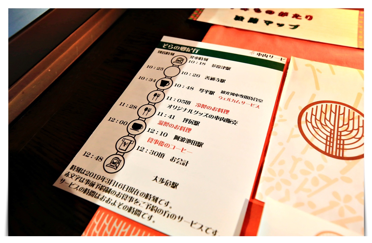 从琴平站出发,乘坐千年物语列车到大步危站,正好是中午用餐时间。一边享受四国的沿途美景、一边享用精致的美食,整个旅程的回忆非常值得纪念。