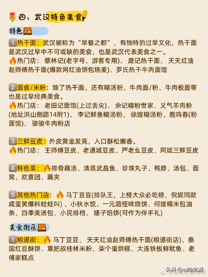 2⃣热门店:蔡林记(老字号,游客专用)、庞记热干面、天天红油赵师傅热干面(爆款网红油饼包烧麦)、罗氏热干牛肉面馆