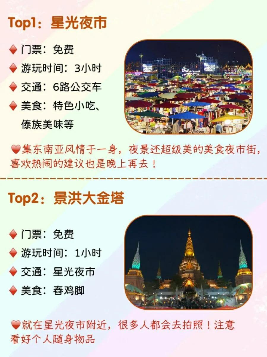 1⃣星光夜市:据说是整个东南亚最大的夜市,一边品尝傣族美食,一边欣赏傣族风情