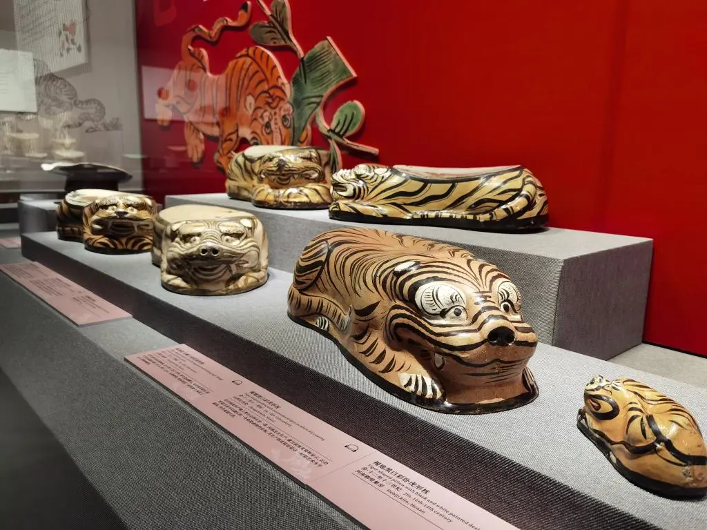 南越王博物院王墓展区的“虎年话虎枕”微展览共展出南越王博物院枕类藏品19件(套),包括一级文物3件、二级文物3件、三级文物3件,另外还有近年新征集、首次展出的三彩虎形刻诗文枕、布枕等精美文物。