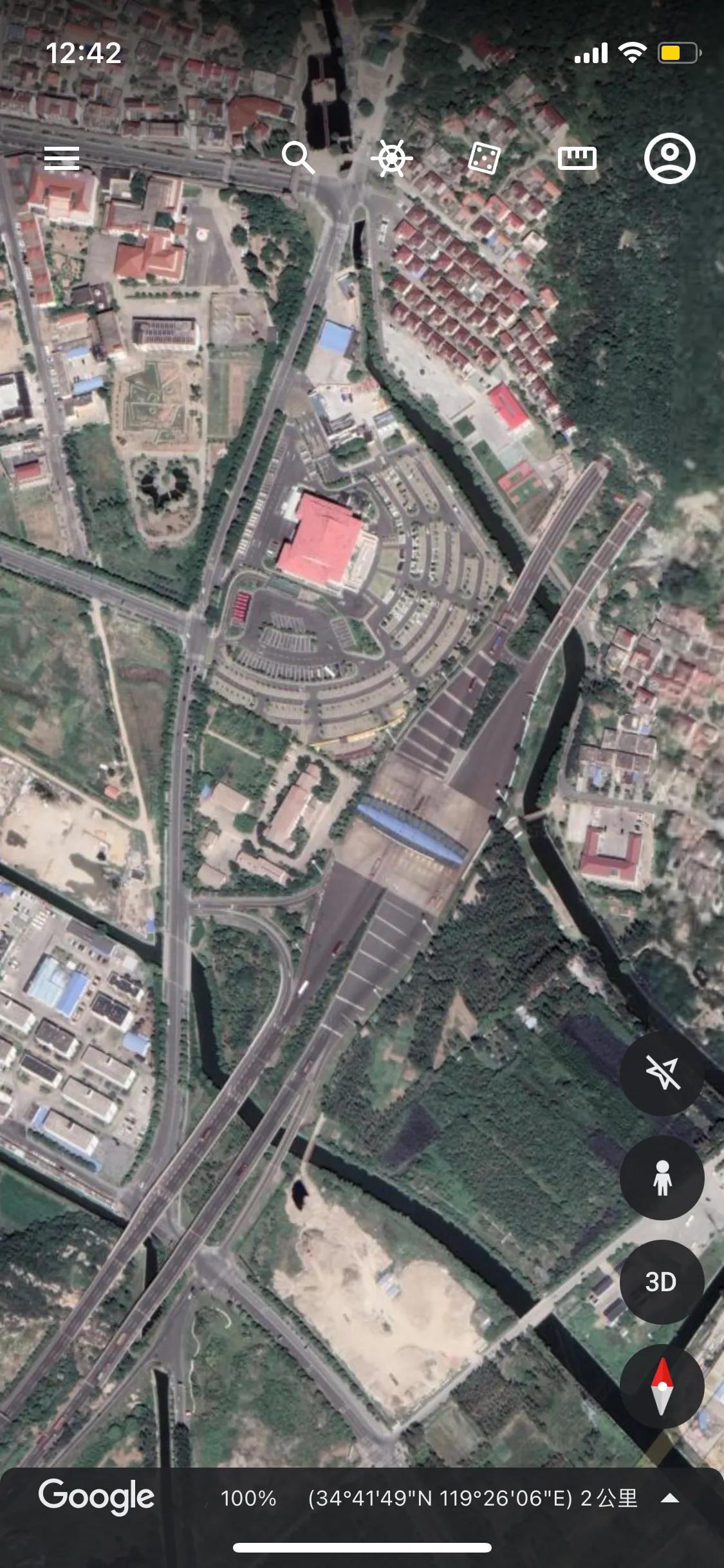 红圈部分为连岛大堤 右上角岛屿为连岛 左下角为花果山 中间为海上云台山