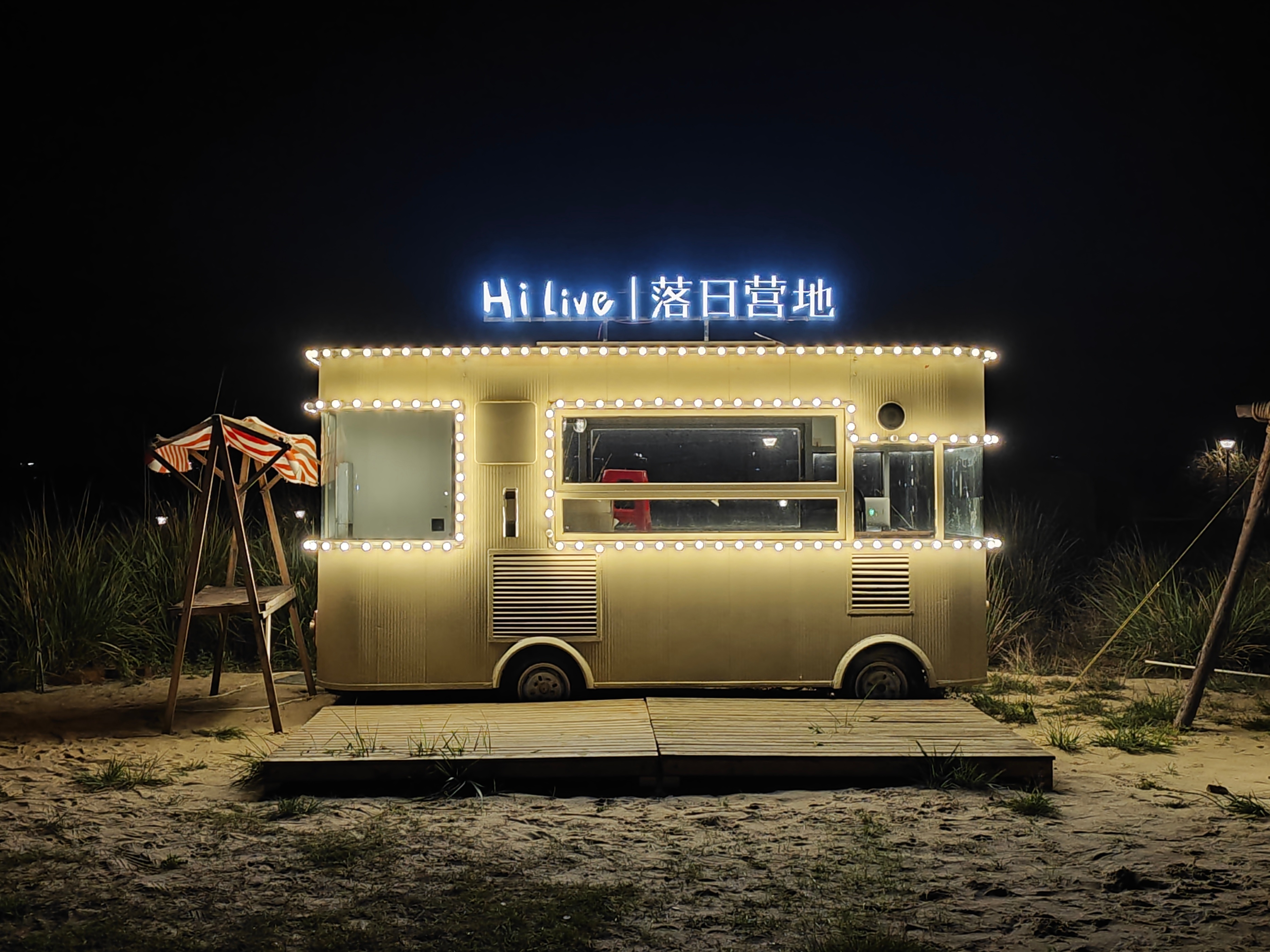 晚上营地的灯亮起来,自带一丝浪漫色彩。如果天气好,应该还能看到满天繁星吧,在这远离城市的静谧海边,洗去一身的烦躁,静静发呆也挺好。