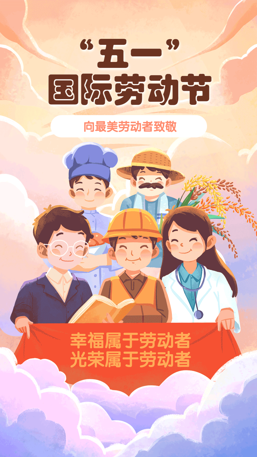 五一劳动节,让我们一起向所有为国家、为人民付出的劳动者致以敬意。愿你们的劳动不断为祖国和人民做出更大的贡献,同时也希望你们的生活和工作充满喜悦和幸福!