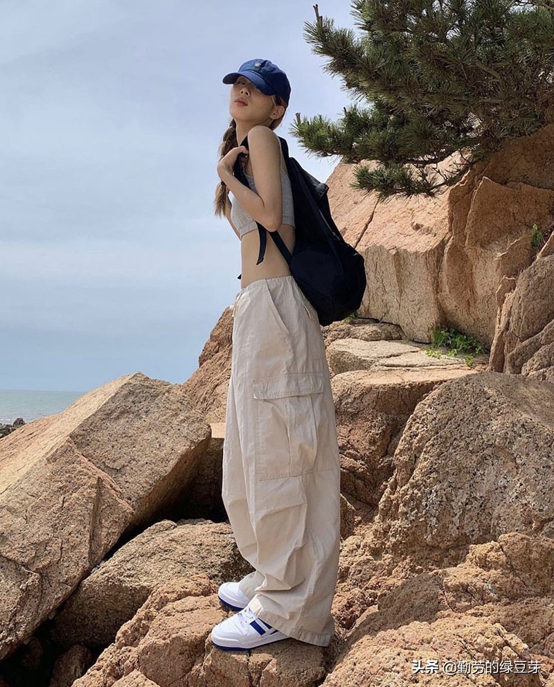 如果嫌前两套Look不够动感,那吊带搭+阔腿休闲裤绝对是将动感和超酷瞬间拉满的搭配。吊带衫的特有设计能够凸显年轻女性健康而又匀称的身材曲线,肥大宽松的阔腿休闲裤视觉上更有一种女团成员的既视感。