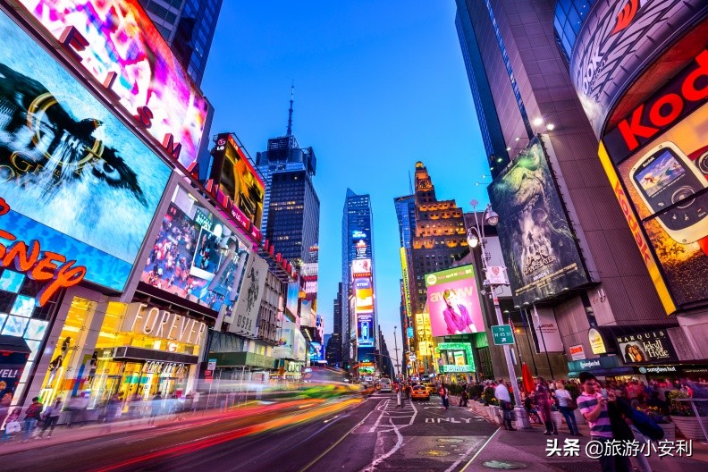 时代广场(Times Square),这是世界最繁华得街口,时代广场成为曼哈顿著名的商业街区,同时也成为聚集剧院、音乐厅、特色酒店的文化集中地。川流不息的人和车,眼花缭乱的LED大屏幕,没有白天和黑夜之分,你从帝国大厦俯瞰纽约的繁华,那么时代广场则是身临繁华的第一站。