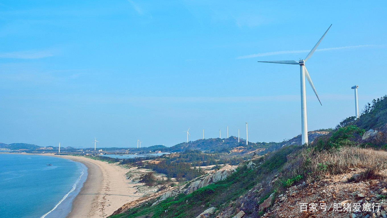 汕尾 风车岛是 红海 湾与碣石湾交接处突伸入海的一个半岛,开车可直达,不用坐游艇。号称粤东麒麟角,总面积约13平方公里,因岛上风力发电群而得名,风车高大约是都市中15层楼,海上风车并不常见。