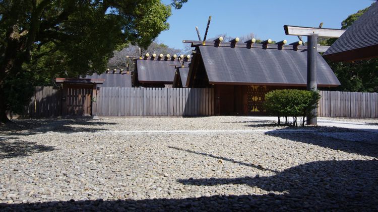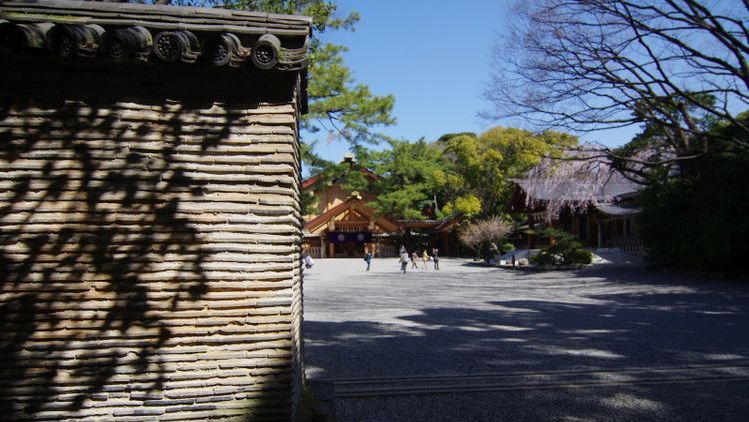 过了信长塀就到拜殿了。隔着围篱望向重重社殿,不由得好奇在那里面,是否真的有传说中的草薙剑?虽然神话无法当成真正的历史,且千年以来也几乎无人看过神剑的样貌。