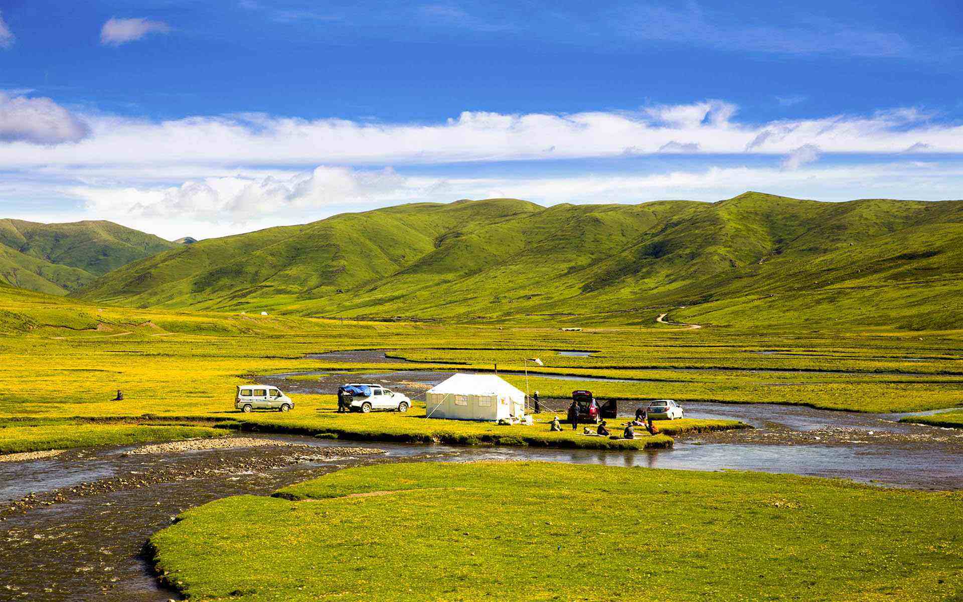 每年7-9月设有藏式帐篷接待站两处,藏包内准备了新鲜奶茶、糌粑、藏包、手抓羊肉等藏区特色风味,以及马匹、牦牛、射击篝火晚会等草原特色节目…在这里可以尽情体验神秘而淳朴的藏族风情~