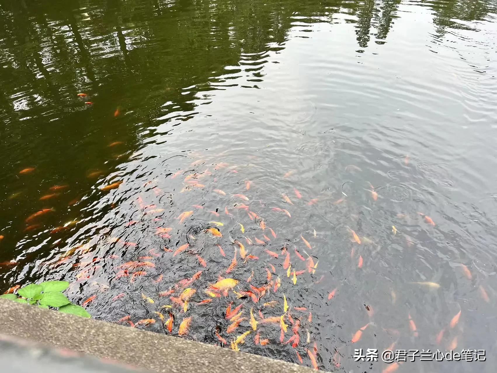 到了跃龙山,我发现那边没有几个人,没有以前那么热闹。接着我们走了进去,然后来到水池边,我看到水里有很多很多的小鱼在游来游去,有黄色的、有红色的、有黑色的、有大的、有小的,这些鱼真可爱啊!我从家里带来了鱼食,我和妹妹一起站在池边给鱼喂食。哇,可以让鱼吃一顿大餐了。