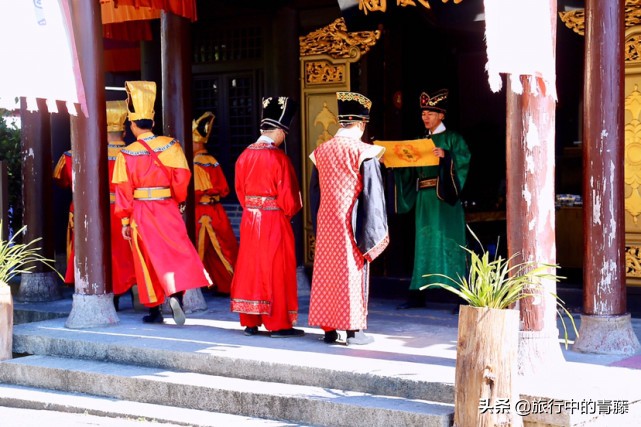 如果你在早上八点和下午二点来这里,在城门口还有开城门的表演,时间一到,两扇城门大开,只见两排武士列队而出,然后分站两边。随后有大理国国王段正明在宫女的陪伴下来到城门前,由一位太监宣读圣旨,意为欢迎众游客来大理国游览,然后游客们进入影视城参观游玩。只可惜我们来的时间迟了一点,没有看到精彩的开城仪式的表演。