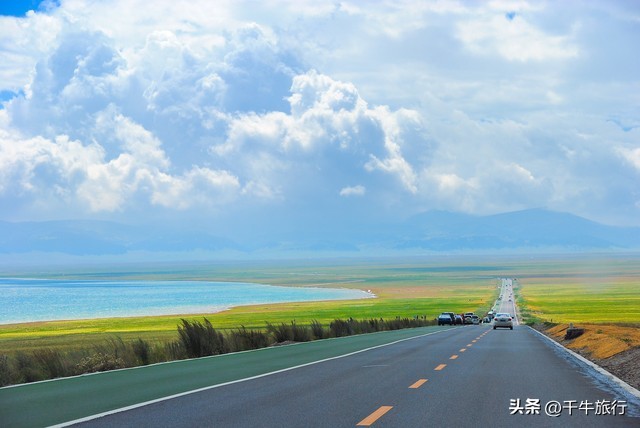 它被四周巍峨的雪山环抱,烟波浩渺、碧水连天的青海湖与草原、雪山绝美的天然画卷,由于青海湖海拔较高,夏季气候凉爽,是一个绝佳的避暑胜地。