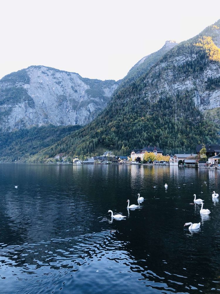 错落有致的房子镶嵌在半山腰上,与绿树相拥,和浮云作伴,一切看起来自然得就像它们原来就在那里一样,美得不加修饰。哈尔施塔特湖是萨尔茨卡默古特地区14个湖泊中最富灵性的观光胜地。天鹅在湖上悠闲浮游觅食。