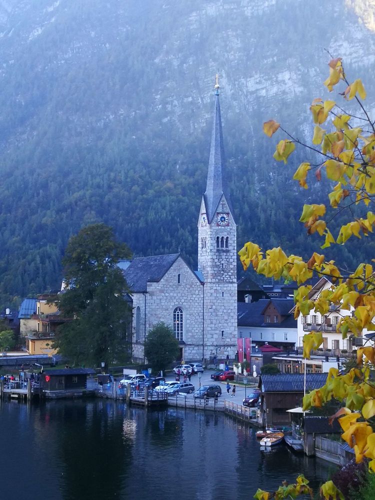 哈尔施塔特小镇。它以具有哥特式屋顶的天主教堂和细尖塔的清教徒教堂为中心,散布着建于山坡斜面色彩斑斓的住宅、庭院以及花团锦蔟的露天咖啡厅。海拔3000多米的壮美山峦和清澈透底的高山湖泊,将这里装点成一个风景如画的仙境,悠久的历史文化和迷人的湖山风光使这里成为世界文化遗产和世界上最美的湖畔小镇。