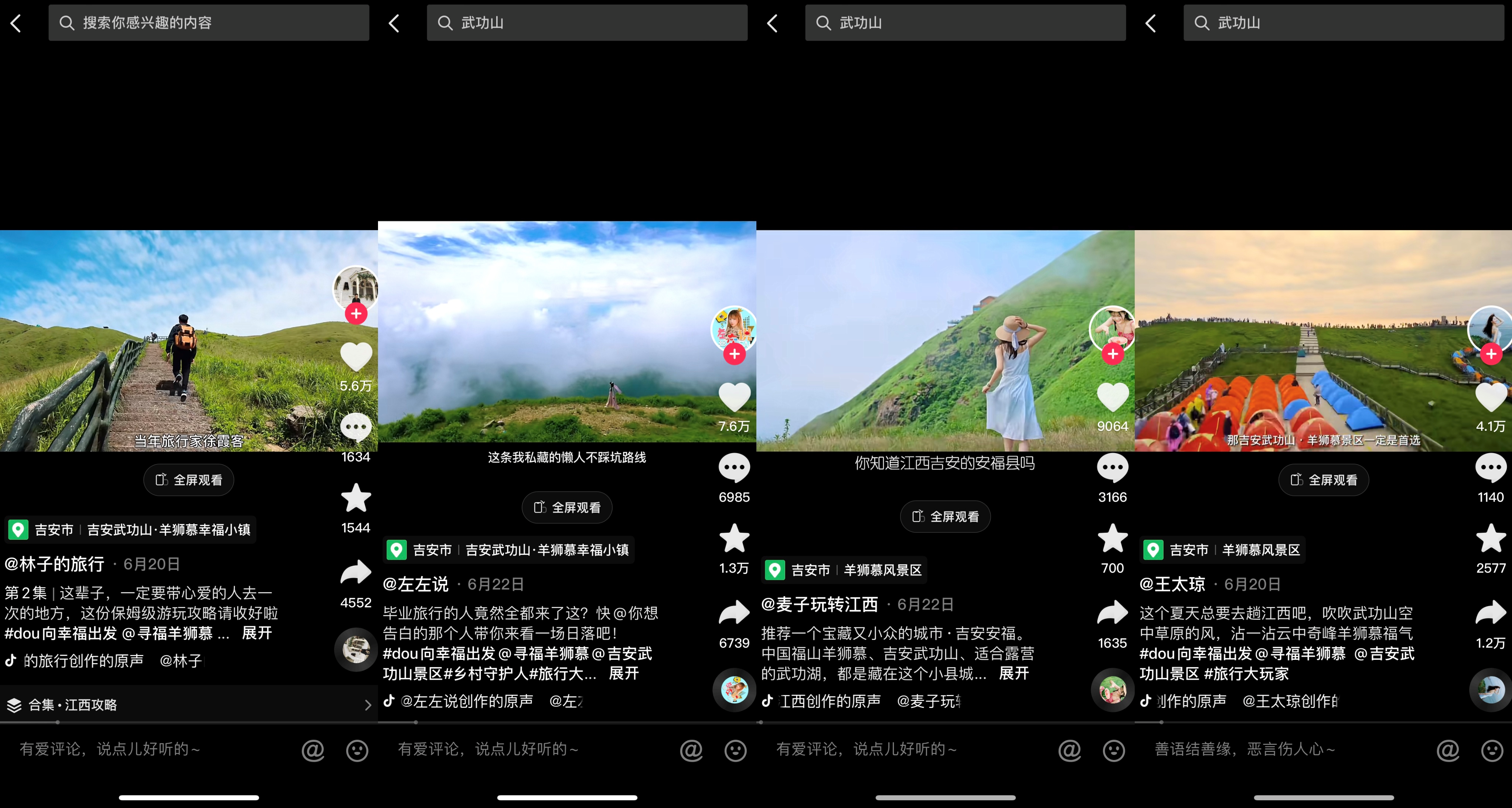 而@王太琼、@麦子玩转江西两位抖音达人同样以各自的视角为大家解读吉安安福的幸福形态,几位达人的视频让不少网友大饱眼福,纷纷感叹原来小小的安福县居然包揽了这么多美景!按捺不住激动的心,即刻来一场说走就走的旅行!