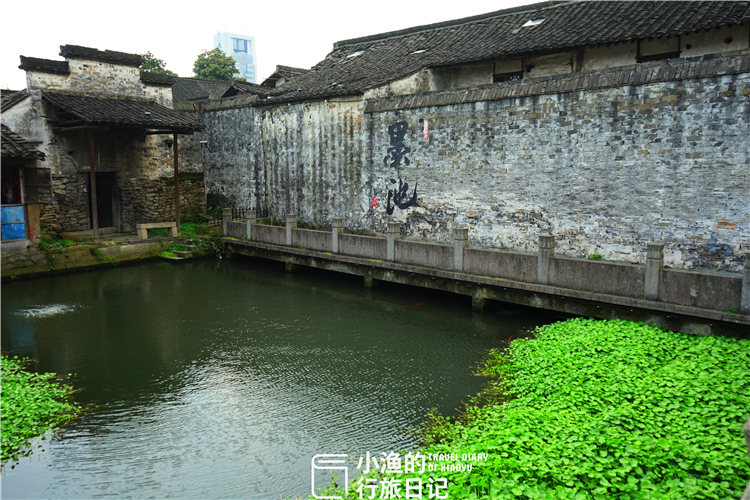 戒珠寺位于西街,是一座寺庙,也曾经是王羲之的故居。寺前有一个墨池,传说幼年王羲之正是在这里练习书法的,因为太过勤奋,将一塘池水都染成了黑色,因此叫做“墨池”。遗憾的是小渔四月份去的时候,戒珠寺和王羲之故居正在修缮中,暂停开放。所以只在墨池前看了看。