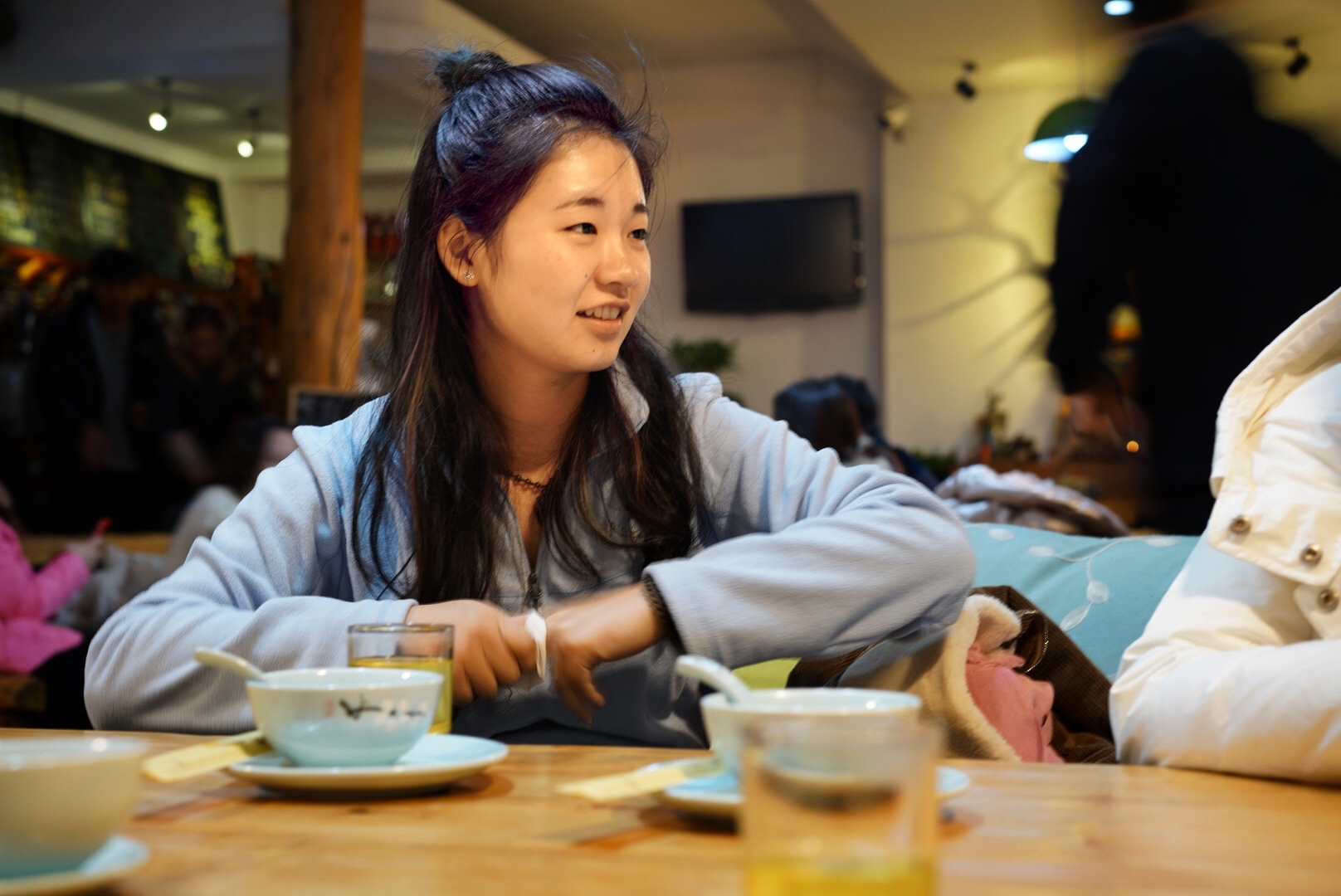 我们的到来显然打破了原本的平静,一到店里,还没来得及点餐,就开始逗猫咪、逗秋田。