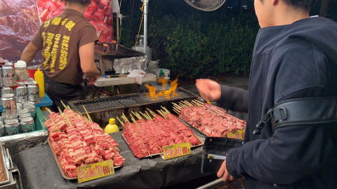 街头,也有很多烤肉店,直接把肉串成一串一串的来卖。一串超级大的牛舌或者牛舌价格在500-700日元不等,居酒屋的牛舌一份会卖到1000日元左右。相比起来街头还是划算不少。