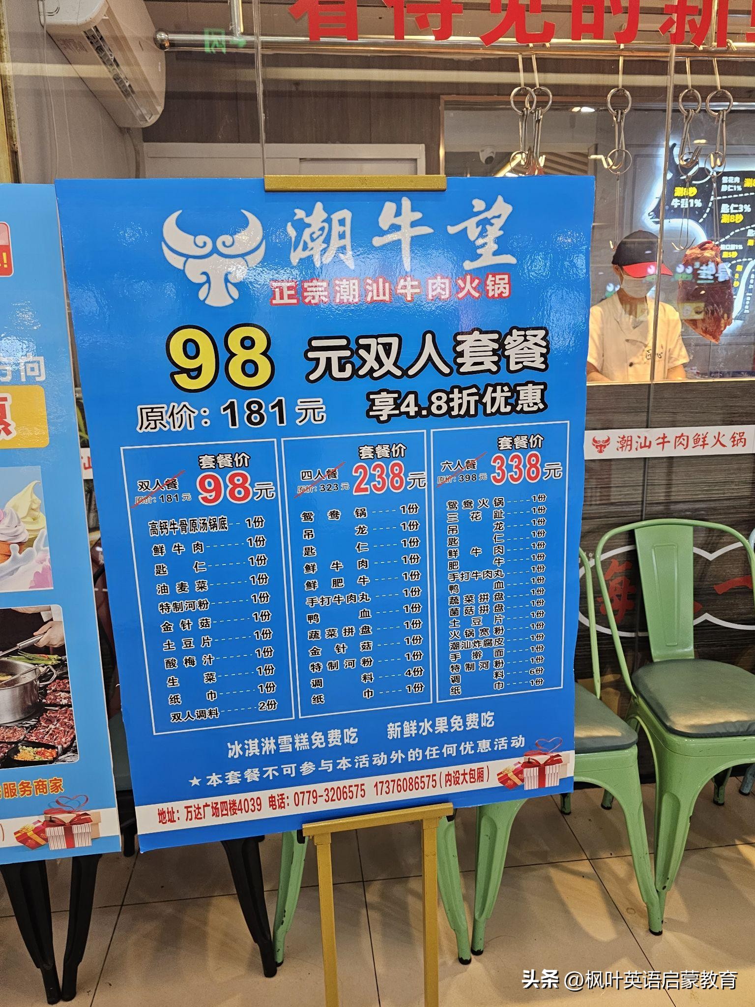 最后给大家推荐吃的,到万达广场去吃吧!环境好,不贵,真正的本地人都在商场消费。付部分菜单。