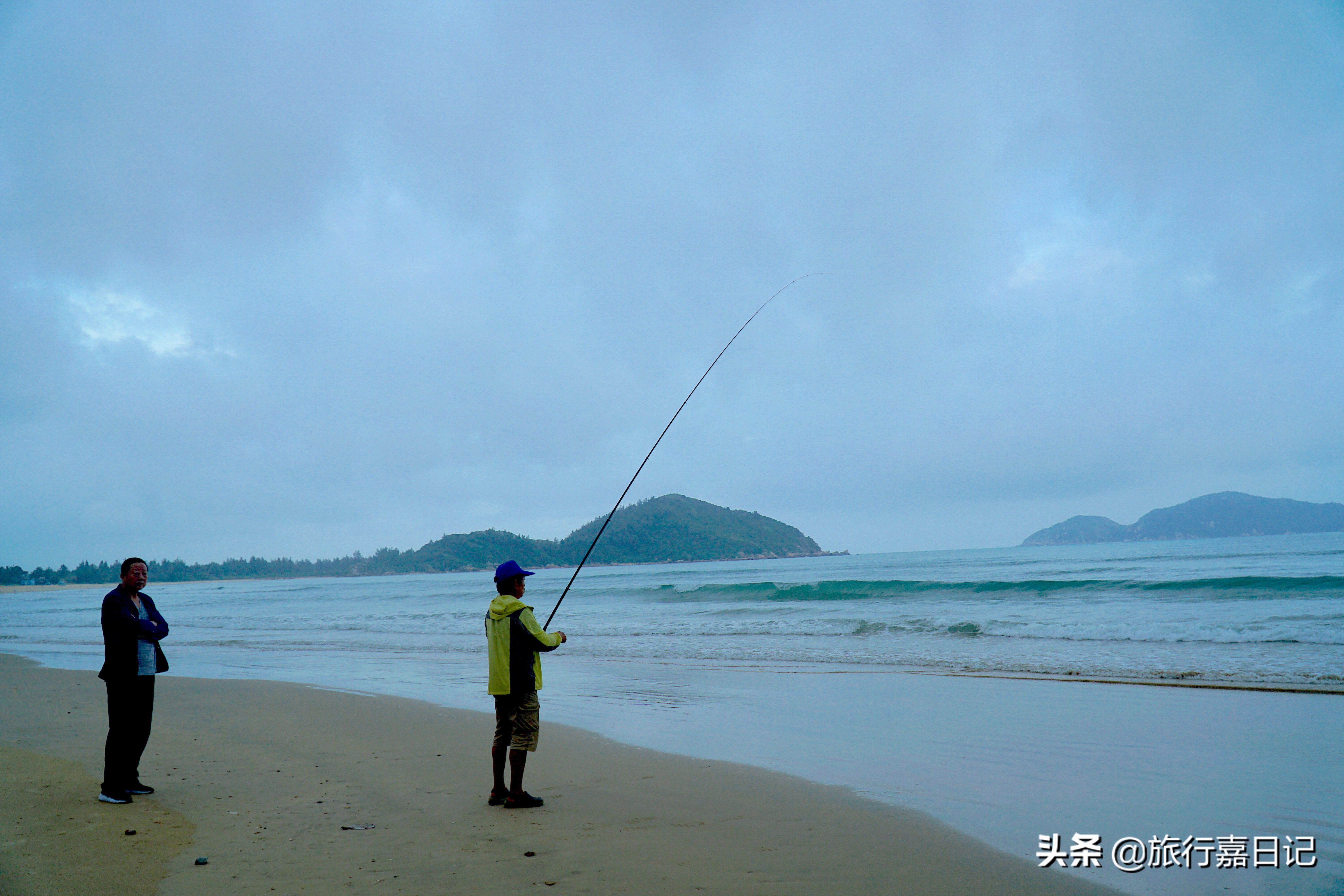偶遇一位在沙滩上钓鱼的大叔,我问他能钓到鱼吗?他笑了笑,漫不经心地说“嘿,也就是玩呗”。于是站在旁边看他钓鱼,没一会就钓上来了一只小鱼。他见鱼太小,就把鱼取下来,放回海里了。