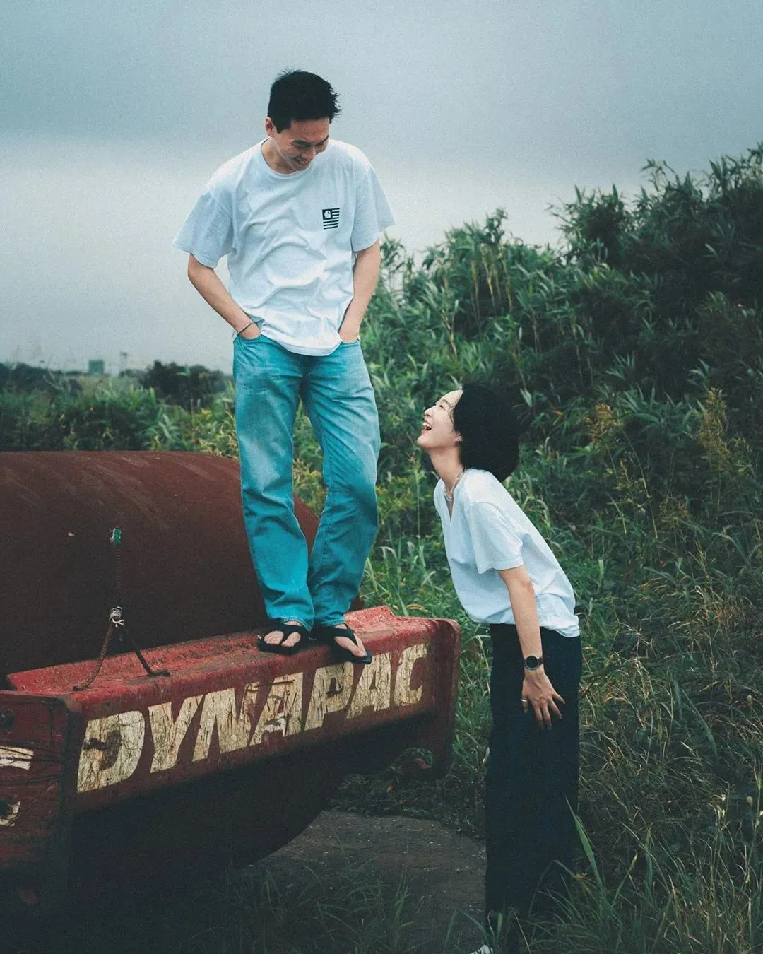 如果你觉得上面这些情侣拍照姿势都太过外露了,想表达得更加内敛一些,那么你可以尝试下面这些拍照摆姿。