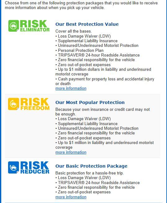 7、页面的下半部分是关于汽车保险的选项,保险这块是没含在总价中,这里尽是对各种保险的介绍,到了柜台后再选择合适自己的类型。