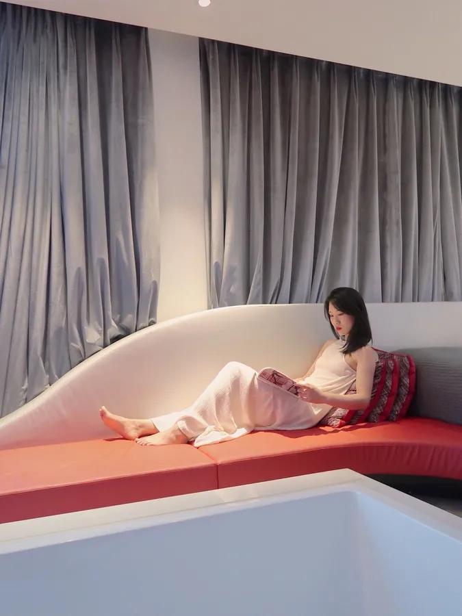 住:民宿周边是一大片的竹林,在绿色环绕之中显得极其的亮眼。整体装修很温馨,住着很舒服。房间很大,设施都是五星标准了,全景大落地,可以看星空哦~