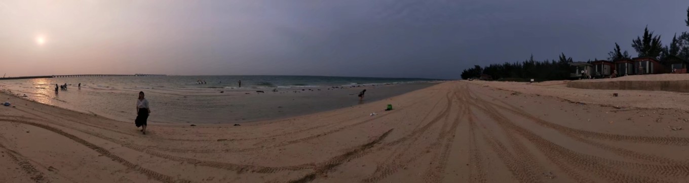 放下行李就出去溜达啦!(我出门玩不喜欢带行李箱很累赘,一个背包完事儿)先去酒店楼下的海边走了一下, 北海天气是真的热,特别要注意注意防晒
