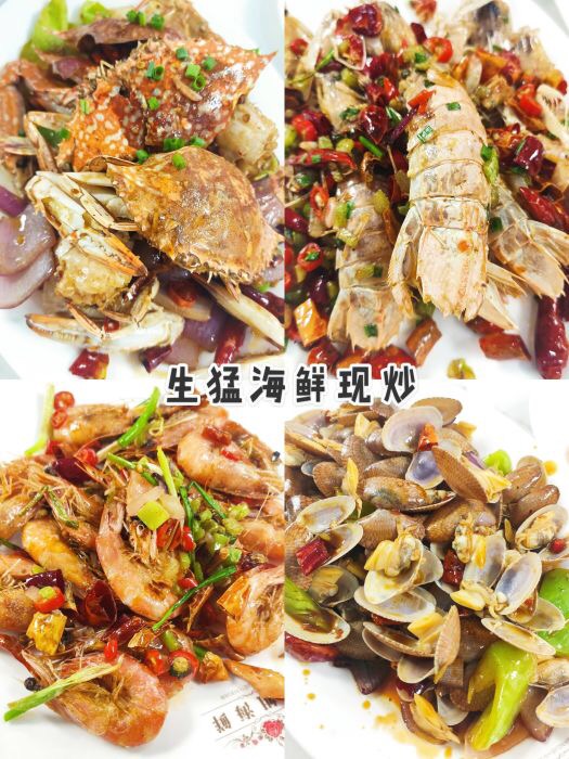 侨港风情街是一条具有很多越南特色,海鲜的美食街,走了几条街,看到了汪姐海鲜的环境还不错,挺有海洋风的,打开美团有一个100多的双人餐,去打卡一下。汪姐海鲜主打的川湘口味,就很适合我这个重庆人的口味选择,如果你还想吃很辣,也可以跟老板娘说。