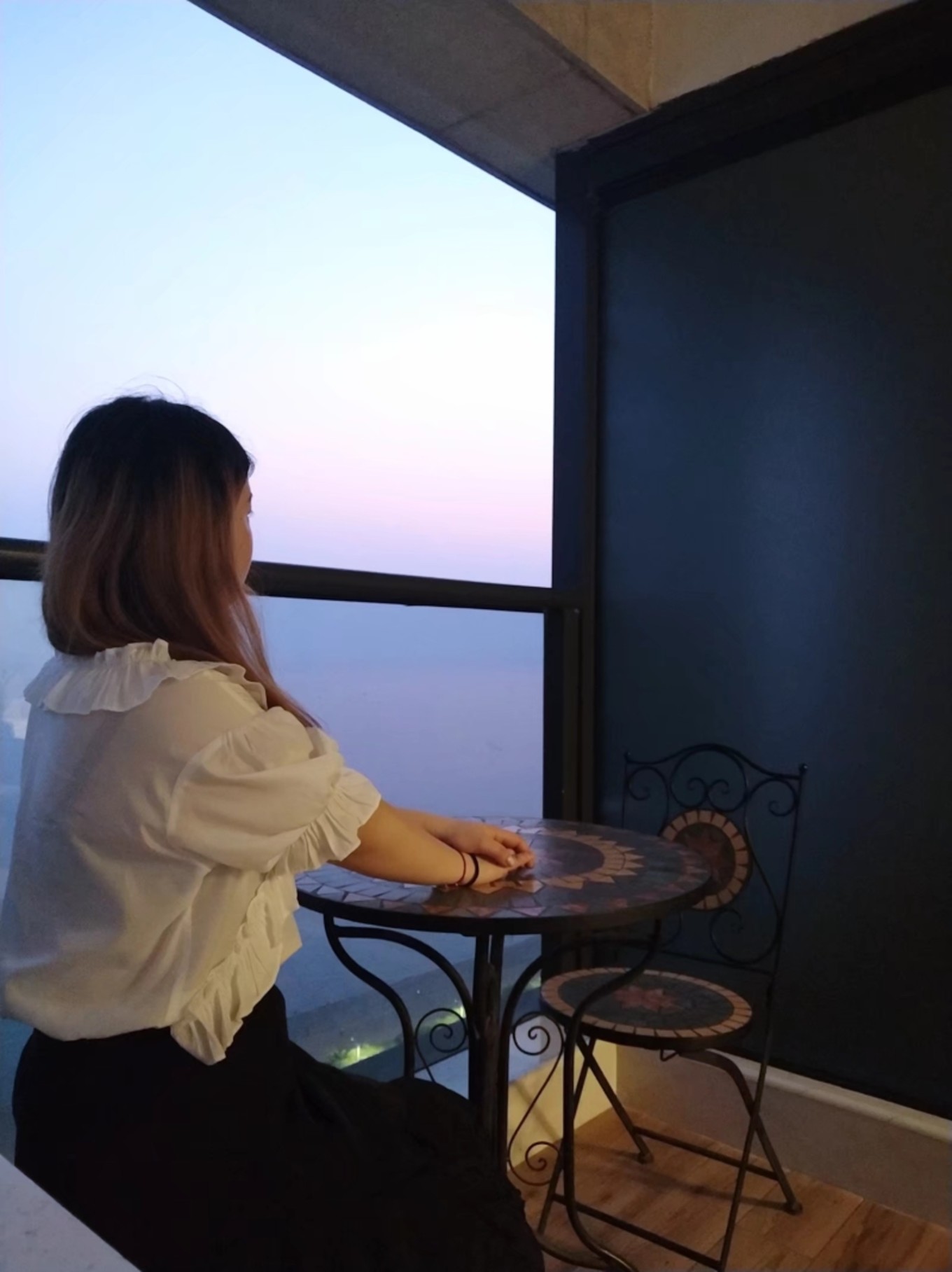 买了点零食凑合了。这是酒店望出去的夜景,太阳☀落下的时候,很漂亮
