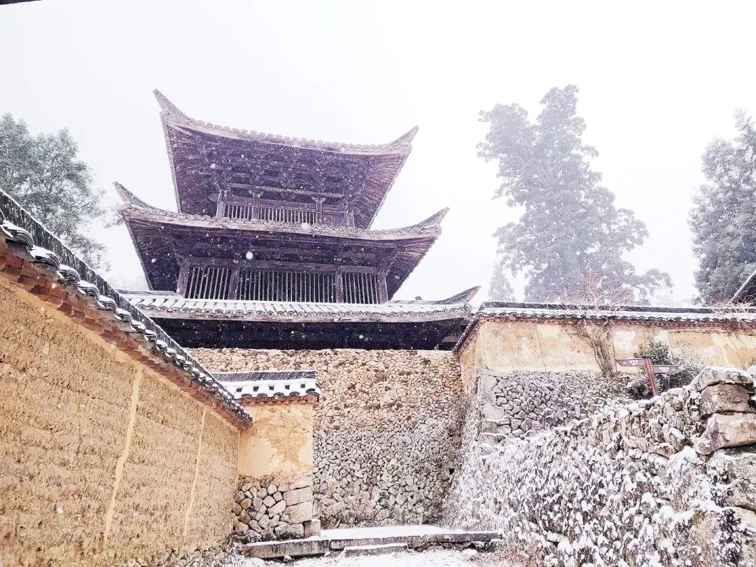 皑皑白雪覆盖在屋顶、小道,与古朴的石头、砖瓦构成一幅迷人的画卷,冬雪中的小镇古韵便油然而生。雪落于古刹瓦檐,与红墙相映甚美。来往的游人,漫步在白雪之上,亦是一道美景。一下雪,大漈就美得不像话,像画。这也让我更期待今年第一场雪的到来。