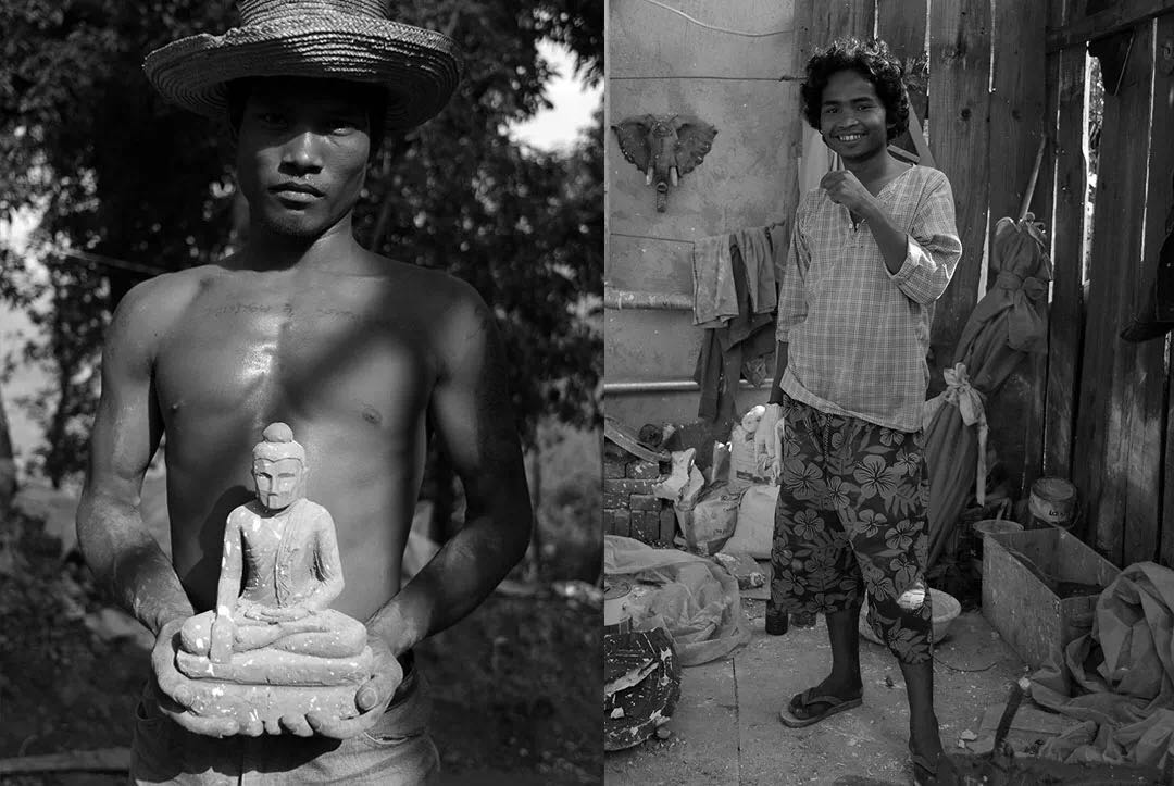 ▲参与修建大金塔的缅甸匠人们。左边这哥们,我总觉得他手捧的雕塑稿是依照他的脸部造型而做的;右边这位,