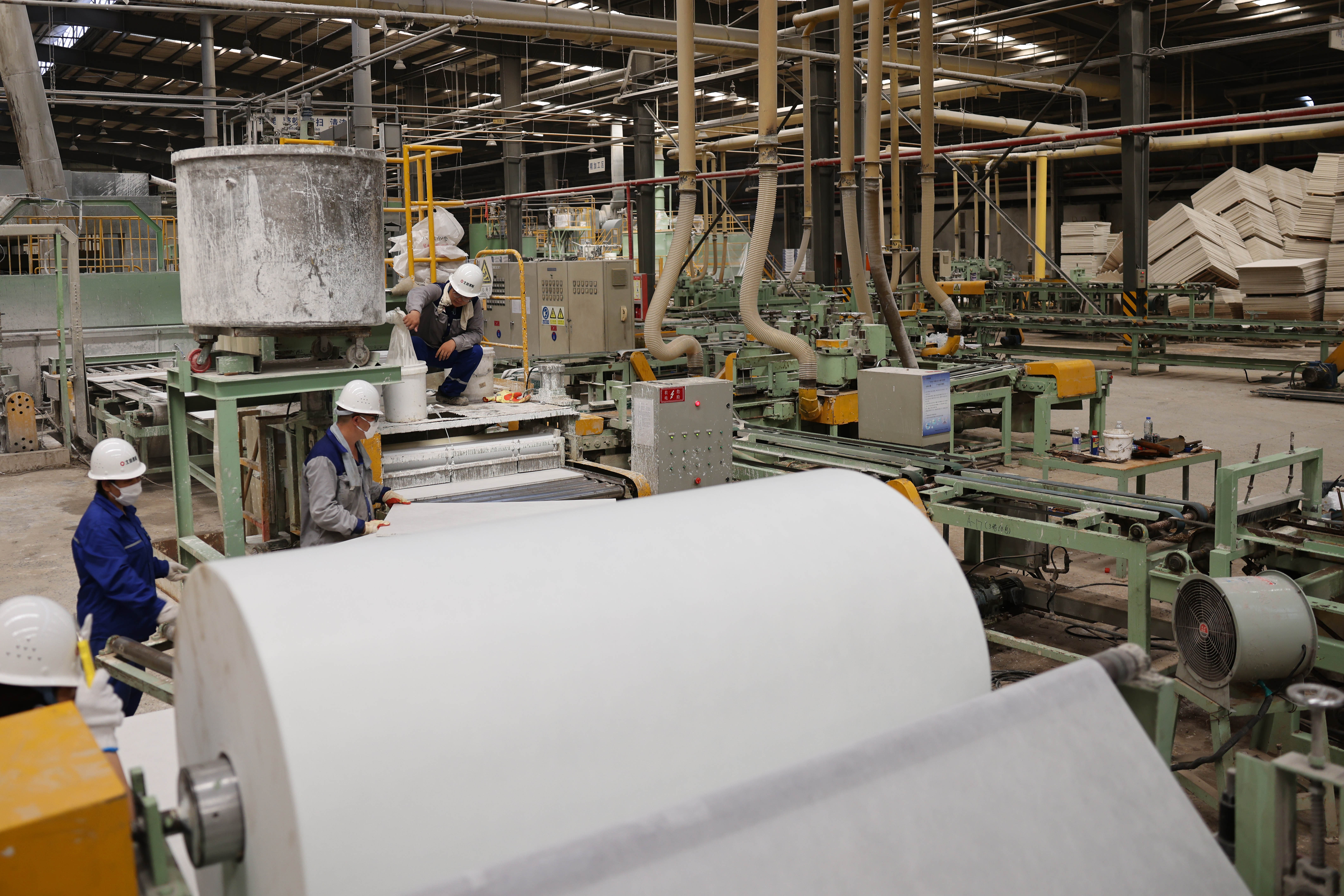 8月19日,工人在北新集团建材股份有限公司涿州分公司矿棉车间工作。 新华社记者 骆学峰 摄