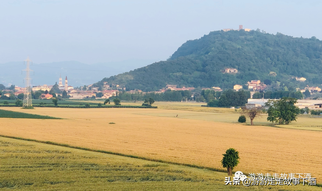 先是一片金黄的稻田抓住了我的目光,远山绵延,一座座民居散落,教堂的尖顶高高地耸立。