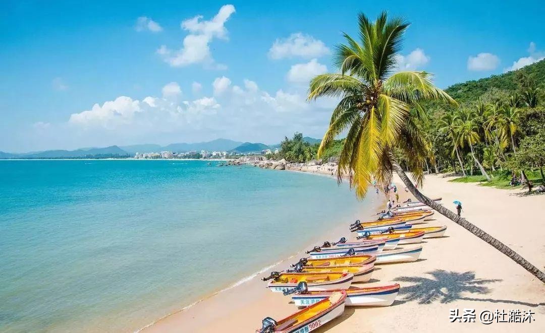 8、大东海:大东海是离市中心比较近的一个海湾,交通、用餐和住宿都比较便利。虽然沙质和水质略逊于亚龙湾,但是比三亚湾更胜一筹,加上地理位置和酒店价位,成立高性价比的所在之处。大东海处于三面环山,整个海湾呈优美的月牙形,椰林环抱着沙滩,环境十分宜人。